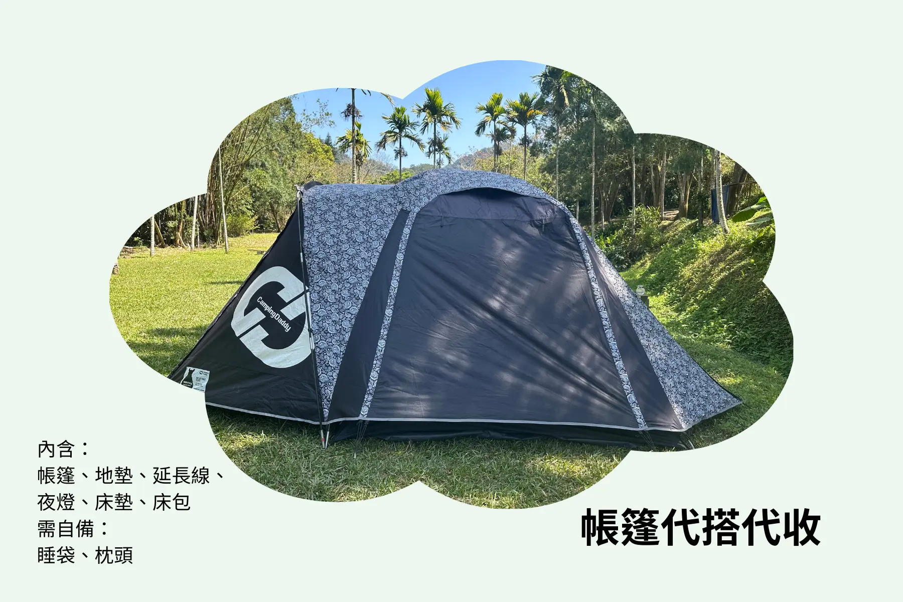 - 帳篷租借最晚登記時間為活動日前8天。(例如週六的活動,需於前一週週四完成登記)